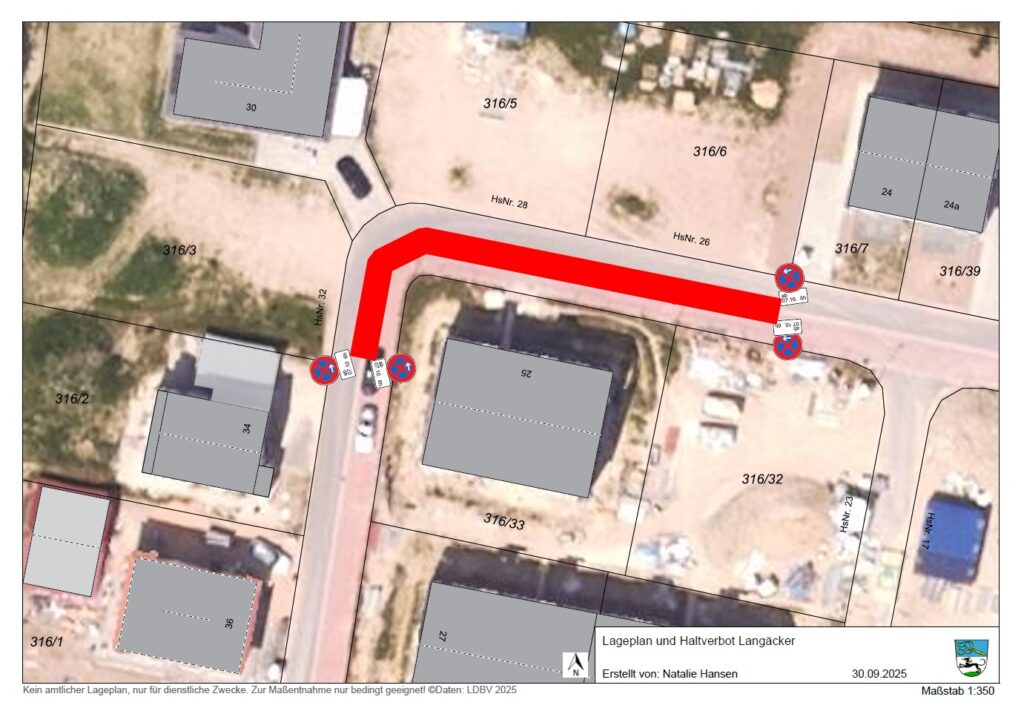 Aufgrund einer Anlieferung von Bauteilen, ist die Straße Langäcker vom 07.10. bis 09.10.2025 für den Gesamtverkehr vollgesperrt.